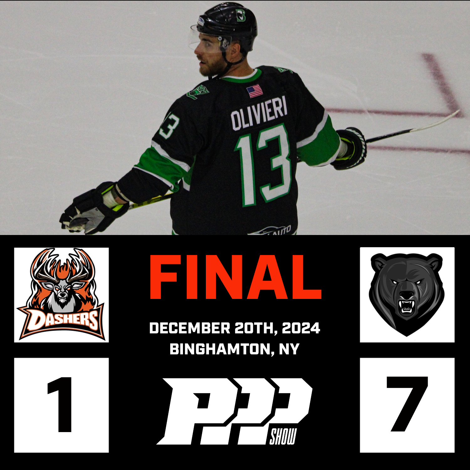 | The Binghamton Black Bears (17-3-1) defeated the Dashers Hockey Club (1-15-3) in a six goal 3rd period which included a feisty 3 fights 13:43 into the final period. The Black Bears got on the score-sheet first with Cameron Clark's 13th goal of the season after receiving a pass from Kyle Stephan at the 14:45 mark of the 1st, putting the Black Bears up 1-0. Neither team could score through the 2nd period but it only took 34 seconds into the third period for the Dashers to tie the game at one goal a piece off the stick of former Hat Tricks forward, Bohdan Zinchenko. This is when the Black Bears then went on a six nothing run in the third period starting off with a Donald Olivieri goal at the 3:13 mark of the final period. Tyson Kirkby scored the next two goals of the period just 5:31 into the third period on the power play, then 2 minutes and 15 seconds later to make this a 4-1 game. However the Black Bears were not done as Kyle Stephan scored at the 11:44 mark, followed up by The Don Father scoring his second goal of the game at the 13:12 mark of the game. The Black Bears 7th and final goal of the game came from Zac Sirota who scored with 2:53 left to go in the game. The Black Bears earn their 17th win off of 7 goals, 4 fights which included Connor McAnanama dropping the gloves for his first professional goalie fight. |